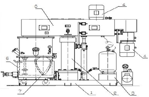 5—控制柜;6—攪拌桶;7—攪拌槳葉