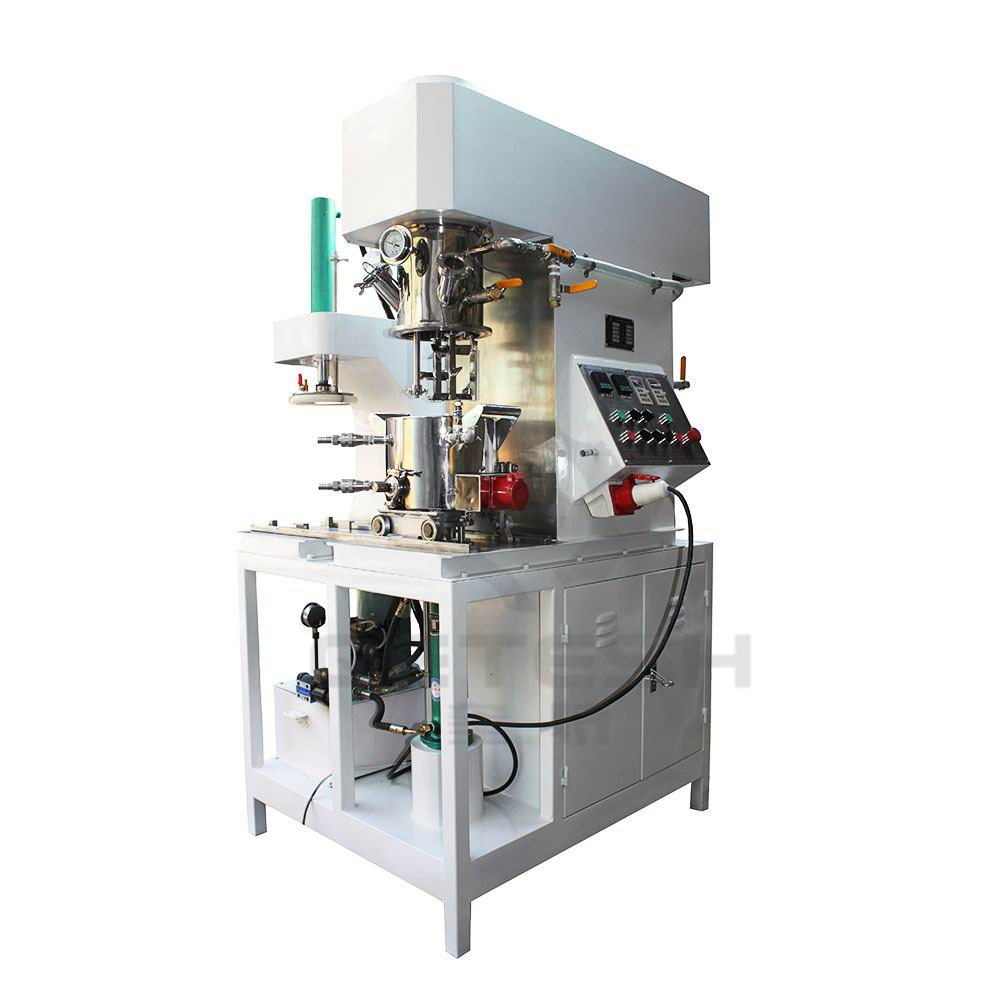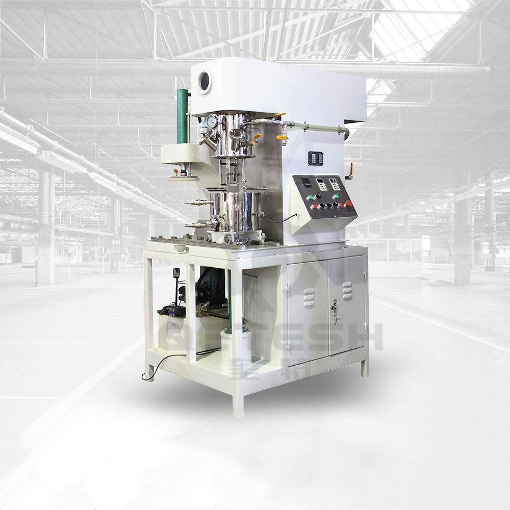 雙行星動力混合機是一種新型且對多種混合液體、粉體進行攪拌、溶解、分散、均質的攪拌設備。該設備配有高速、低速、活動刮板部件,低速攪拌部件采用行星齒輪傳動,攪拌槳在公轉時也自轉,使物料上下及四周運動,從而在較短的時間內達到理想的混合效果。高速分散/乳化部件與行星箱一起公轉,同時高速自轉,使物料受到強烈的剪切與分散混合,罐體內壁為大型立車精加工,再經(jīng)大型拋光機自動拋光,確保行星箱上的活動刮刀在旋轉時,把罐體內壁上的物料完全刮掉,其混合效果是普通混合機的幾到幾十倍。廣泛應用于電池、有機硅膠、高端油墨、染料、粘膠劑、高端高粘度涂料等化工產(chǎn)品的生產(chǎn)。